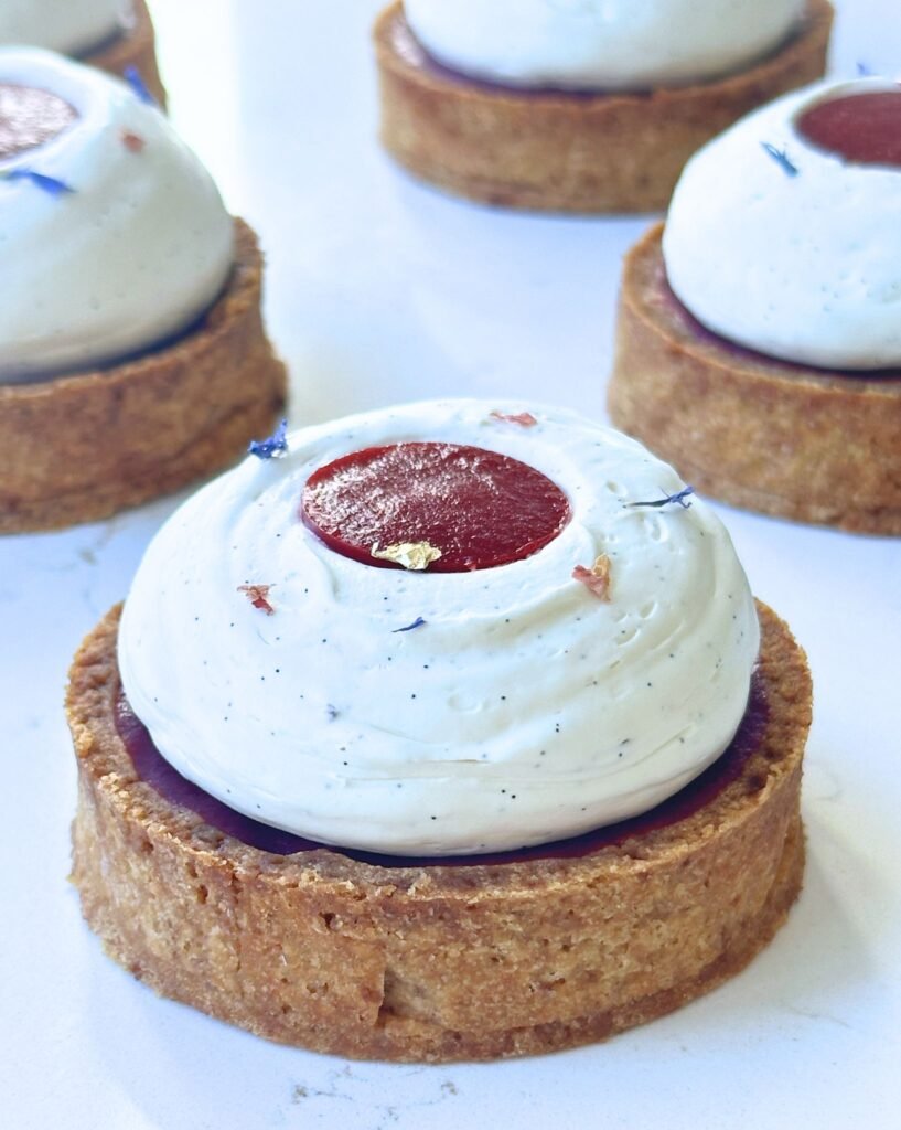 Je développe une gamme de pâtisseries élaborées avec des sucres alternatifs et des farines soigneusement sélectionnées pour leur qualité nutritionnelle, afin d’offrir une gourmandise plus respectueuse du corps, sans jamais compromettre le goût.
