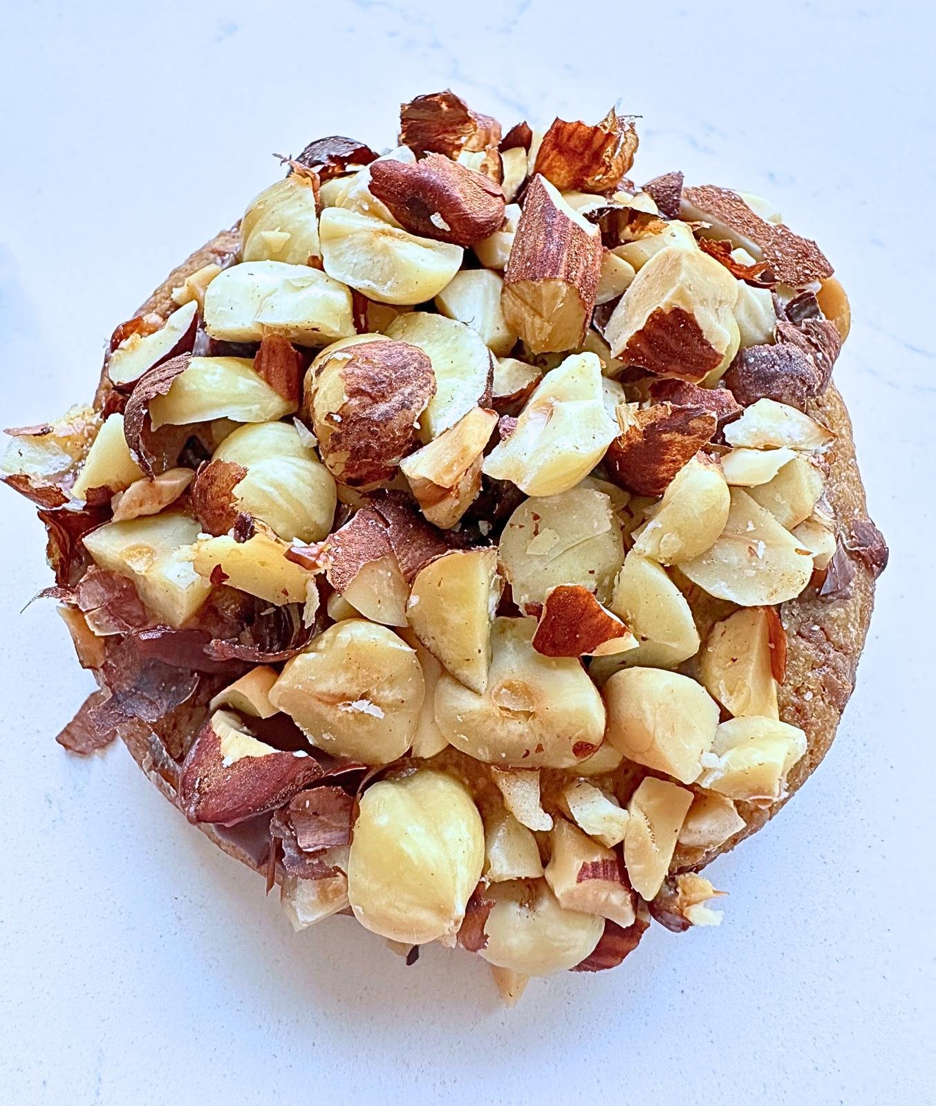 Cookies noisettes composés de chocolat au lait et chocolat caramel, praliné noisette, amandes et noisettes
